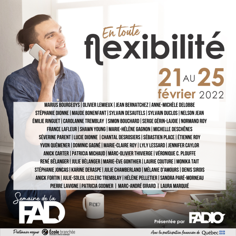 Impossible de le nier, avec les deux années que nous venons de vivre, la manière de considérer certains sujets en éducation a changé, voire évolué (c’est selon!). La programmation de la Semaine de la FAD a donc été réfléchie pour mettre en lumière des pistes afin de parler de l’éducation comme elle est perçue aujourd’hui et comment il est possible de la projeter dans les années à venir.