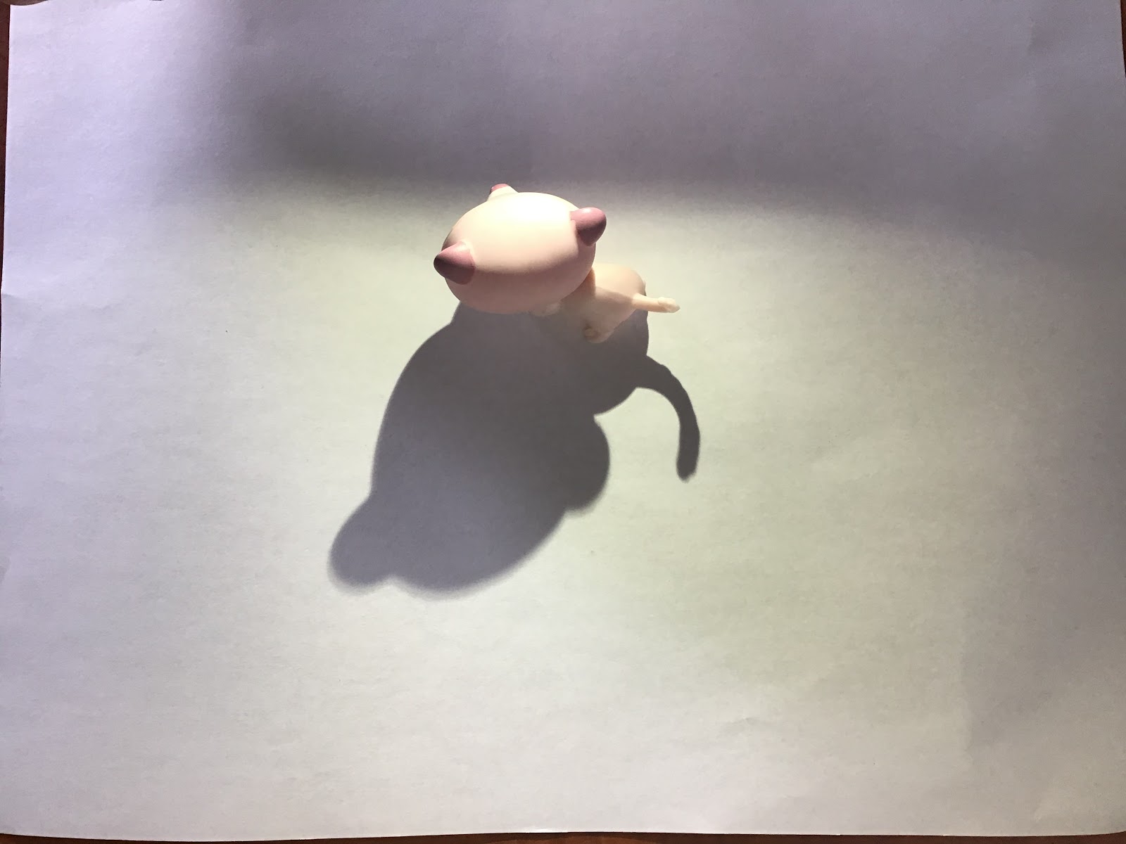 1- Il s’agit de positionner la figurine sur une feuille et de diriger une lampe de poche sur la figurine pour créer l’ombre qui semble offrir la meilleure image. Il est aussi possible d’utiliser la lumière directe du soleil par la fenêtre, par exemple.