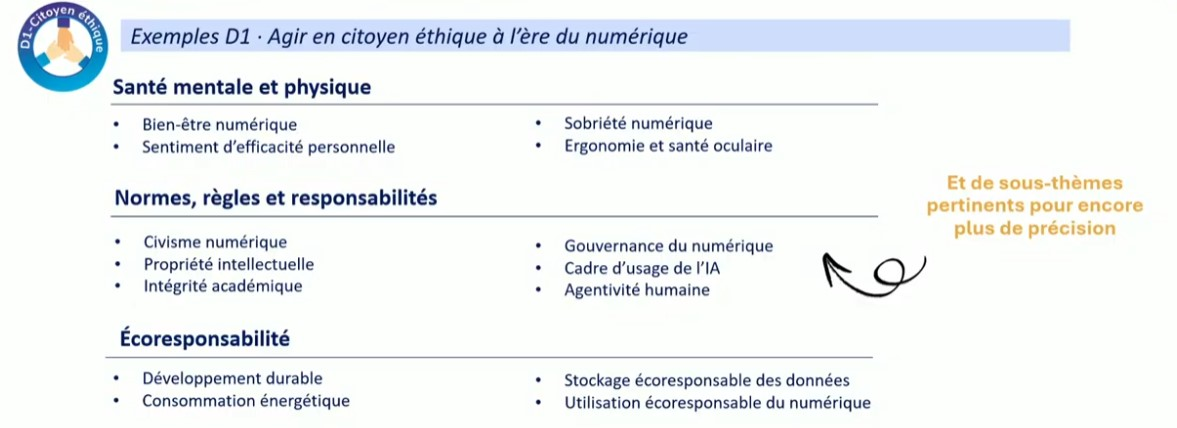 Le Cadre de référence de 2019 fonctionnait bien. L’édition 2025 prolonge ces acquis, clarifie la progression et actualise les contenus. Elle intègre l’IA sans l’ériger en totem, traite des enjeux apparus depuis 2018, s’ouvre à tous les publics.