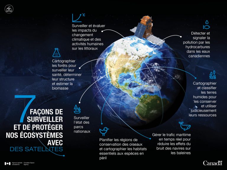 On peut lire sur le nouveau site Web de la mission de la Constellation RADARSAT : « La mission de la Constellation RADARSAT (MCR) est la nouvelle génération de satellites canadiens d’observation de la Terre. Les trois satellites identiques, dont le lancement est prévu pour le 11 juin 2019, évolueront en formation pour fournir aux Canadiens des solutions à des défis importants. »