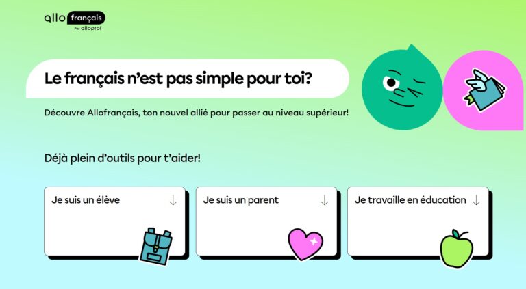 Alloprof, organisme de soutien scolaire à but non lucratif fondé en 1996, a pour mission d’aider les élèves québécois à réussir à l’école. Initialement axé sur le soutien téléphonique, Alloprof a évolué au fil des ans pour offrir une gamme complète de services, y compris un site Web avec des fiches, des vidéos, des exercices et des jeux, ainsi qu’un soutien personnalisé par clavardage, texto et forum d’entraide.