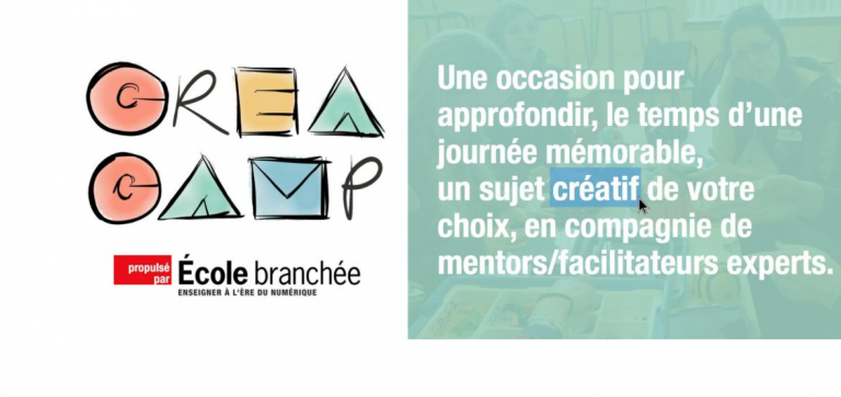 Nous sommes à la recherche d’enseignants, conseillers pédagogiques et intervenants d’organismes divers pour nous accompagner dans une ou plusieurs éditions des CréaCamps, selon vos intérêts et disponibilités. Certaines dates sont déjà annoncées, plusieurs autres viendront : https://ecolebranchee.com/creacamp/