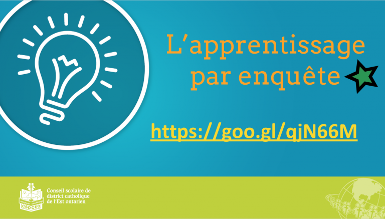 À l’occasion du Congrès automnal en éducation entrepreneuriale consciente, Élaine Lucas, conseillère pédagogique au CSDCEO et membre de l’équipe TacTIC du CFORP (une équipe dont le mandat s’apparente à celui de nos RÉCIT), a présenté le modèle d’apprentissage par l’enquête (inquiry based learning), très développé en Ontario particulièrement dans les écoles anglophones.
