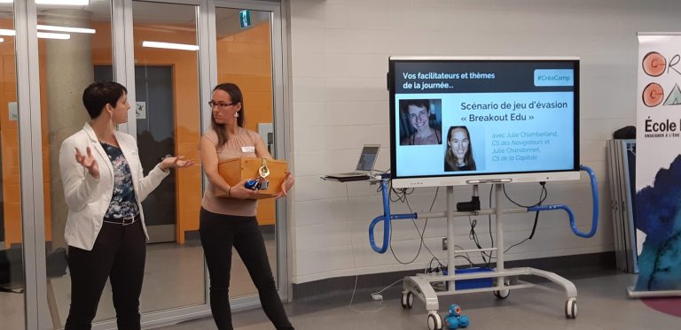 Explorer le potentiel pédagogique des jeux d’évasion et imaginer un scénario adapté à son contexte et à ses élèves, voilà ce qui était proposé par le duo de facilitatrices Julie Chandonnet et Julie Chamberland lors du CréaCamp du 1er novembre dernier à Montréal. Cet atelier a été un véritable déclencheur pour Audrey Lefebvre qui nous raconte, dans cet article, comment elle a réinvesti ses apprentissages dans les mois qui ont suivi son expérience au CréaCamp.