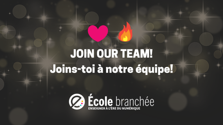 L’École branchée is a non-profit organization that supports education stakeholders in developing their professional expertise in the digital age to foster educational success. In other words, our small, ultra-dynamic team informs, trains and equips teachers, educational consultants and school administrators in order to develop digital competence.