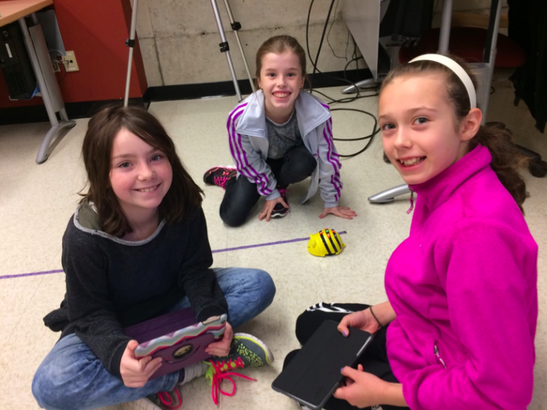 Les élèves planifient avant de programmer les abeilles robots BeeBot.