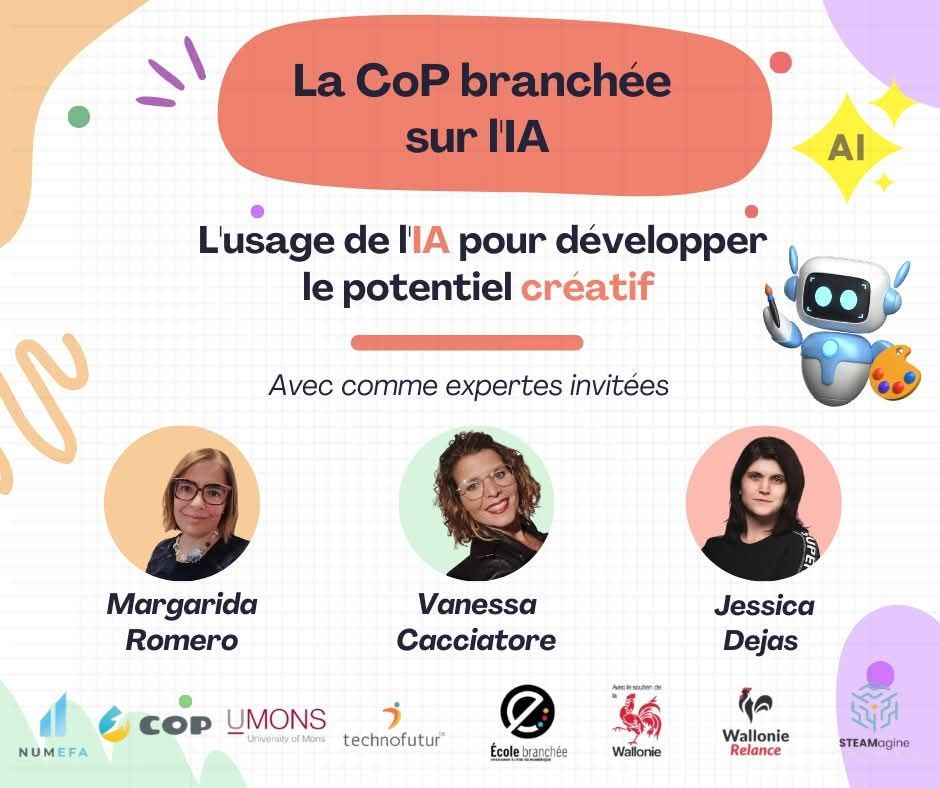 Nos collègues de TechnofuturTIC et les partenaires lanceront le troisième et dernier cycle de la communauté de pratique « Branchée sur l’IA » avec un webinaire d’introduction consacré au développement du potentiel créatif par l’intelligence artificielle, le 18 mars prochain à 13h (heure du Québec) ou 18h (heure de la Belgique). Ouverte à toutes et à tous, l’activité réunira plusieurs expertes afin d’examiner comment ces outils, désormais largement utilisés en contexte scolaire, transforment les pratiques pédagogiques et redéfinissent la notion même de créativité. On peut s’inscrire ici.