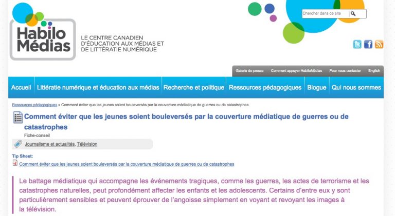 « Le battage médiatique qui accompagne les événements tragiques, comme les guerres, les actes de terrorisme et les catastrophes naturelles, peut profondément affecter les enfants et les adolescents. Certains d’entre eux y sont particulièrement sensibles et peuvent éprouver de l’angoisse simplement en voyant et revoyant les images à la télévision. »