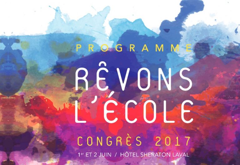 « Alors que le gouvernement s’apprête à dévoiler une politique de la réussite éducative, que des budgets importants sont disponibles pour la construction de nouvelles écoles, que les nouvelles technologies ont un impact sur les façons d’enseigner et le quotidien des élèves, que le marché de l’emploi évolue, que les relations entre l’école et sa communauté changent, l’objectif du congrès est d’imaginer l’école de demain. »
