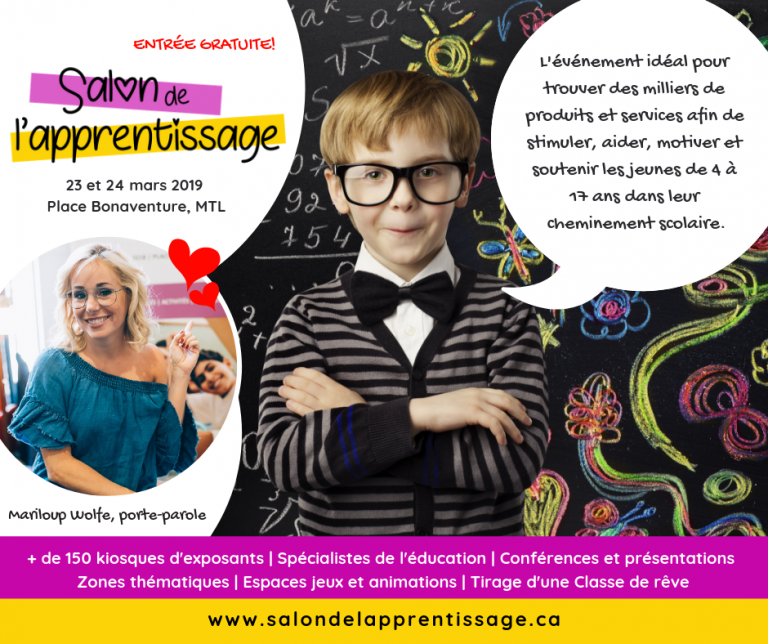 Montréal, lundi 11 février 2019 – Le Salon de l’apprentissage prépare sa deuxième édition à la Place Bonaventure de Montréal, les 23 et 24 mars prochains. Cet événement d’envergure est gratuit et ouvert à tous ceux qui cherchent des ressources ou des outils pour aider les enfants du primaire et du secondaire.