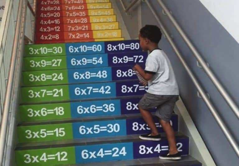 Ainsi, l’entreprise a créé des étiquettes qui peuvent être apposées sur les contremarches d’escalier. Le premier type d’étiquettes offert a été une représentation visuelle des tables d’équation mathématique (multiplications, divisions, additions et soustractions de 1 à 12). « Nos étiquettes sont un outil d’apprentissage spécialement créé pour les écoles. À chaque fois que les jeunes circulent dans les escaliers, les couleurs vives captent leur attention et aident à la mémorisation », fait valoir la directrice.