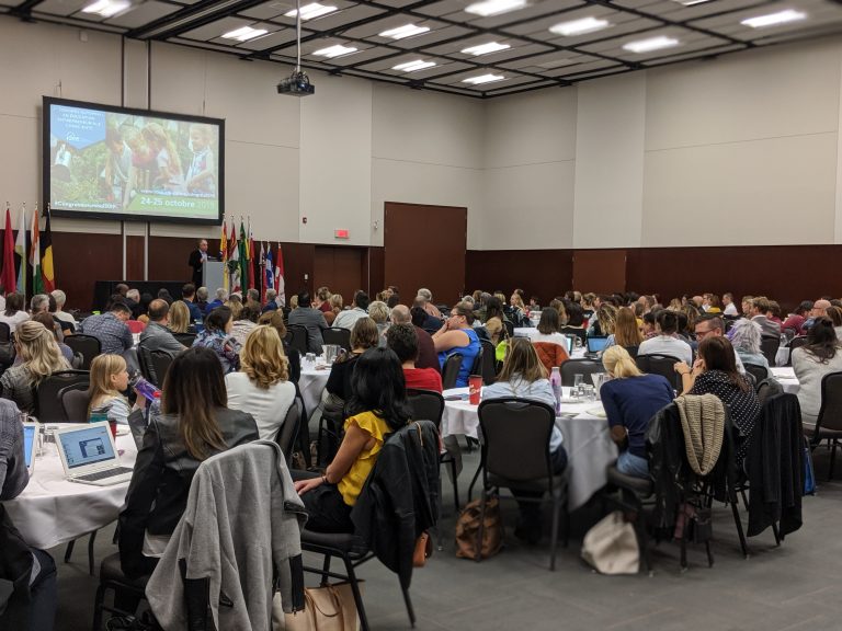 Lévis, le 28 octobre 2019. – Plus de 300 enseignants, directions d’école et professionnels du monde de l’éducation provenant de six provinces canadiennes et de cinq pays étaient réunis jeudi et vendredi au Centre de congrès et d’expositions de Lévis pour la deuxième édition du Congrès automnal en éducation entrepreneuriale consciente.