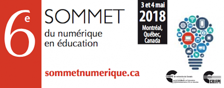 Le 6e Sommet du numérique en éducation aura lieu au Centre Sheraton de Montréal, les 3 et 4 mai 2018. L’appel à proposition de communications est disponible sur le site Web du Sommet.