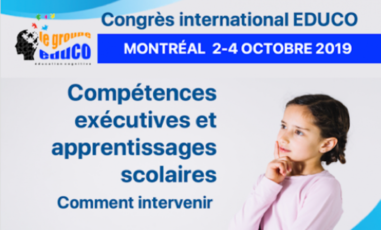 Le congrès international LES COMPÉTENCES EXÉCUTIVES ET LES APPRENTISSAGES SCOLAIRES : INTERVENIR se tiendra à Montréal du 2 au 4 octobre 2019 à l’Hôtel Universel. Cet événement vise à favoriser l’arrimage entre les neurosciences cognitives sur l’attention, les fonctions exécutives et l'intervention pédagogique.