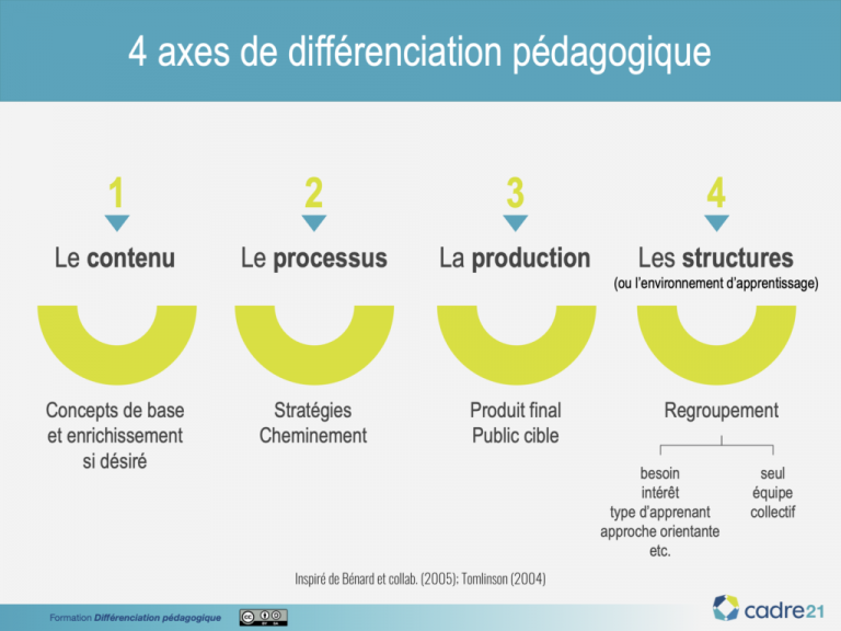 Comme les autres formations du CADRE21, Différenciation pédagogique présente quatre (4) niveaux :