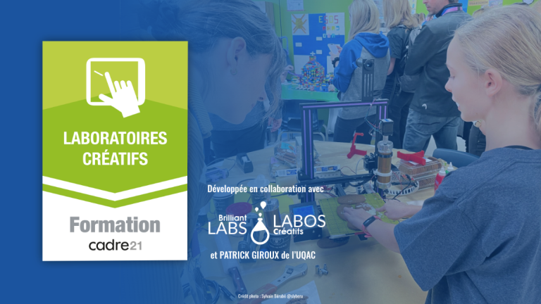 Depuis la semaine dernière, une toute nouvelle autoformation est disponible sur la plateforme du CADRE21, organisme de développement professionnel pour tout le personnel scolaire. La formation Laboratoires créatifs a pour objectif de permettre aux enseignants de mieux comprendre les valeurs derrière la mise en place de tels environnements de prototypage et de se placer dans la posture de l’enseignant « maker ».