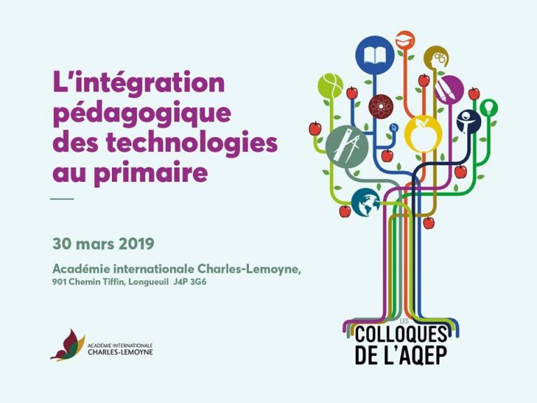 Le samedi 30 mars, l’Association québécoise des enseignantes et des enseignants du primaire (AQEP) organise une journée de colloque sur l’intégration pédagogique des technologies au primaire. Cette formation se déroulera à Longueuil au Collège Charles-Lemoyne et son école préscolaire et primaire l’Académie Internationale Charles-Lemoyne.