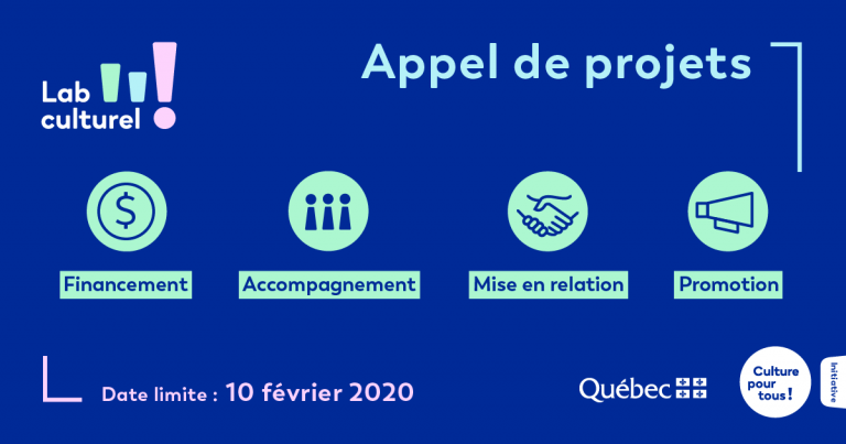 MONTRÉAL, le 13 janvier 2020 – Seul incubateur exclusivement dédié à la réalisation de projets numériques innovants en culture au Québec, le Lab culturel de Culture pour tous lance officiellement son 5e appel de projets. Celui-ci mènera à la réalisation d’initiatives permettant de rapprocher la culture et le citoyen grâce au numérique. Deux volets d’intervention sont proposés : Éducation et Découvrabilité.