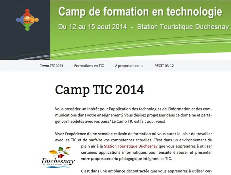 Pendant 4 jours, les participants ont appris à utiliser certaines applications informatiques pour ensuite élaborer et présenter leurs propres scénarios pédagogiques intégrant les TIC. S’il est difficile de faire le choix d’abréger ses vacances, il faut dire que l’événement se déroule dans le cadre champêtre de la Station touristique de Duchesnay, favorisant l’alternance entre les périodes de formation, de travail et de loisir pour « favoriser des apprentissages accélérés, des discussions pédagogiques spontanées et l’émergence d’activités « pédago-tic » toutes prêtes à réinvestir en classe », peut-on lire sur le site du Camp.