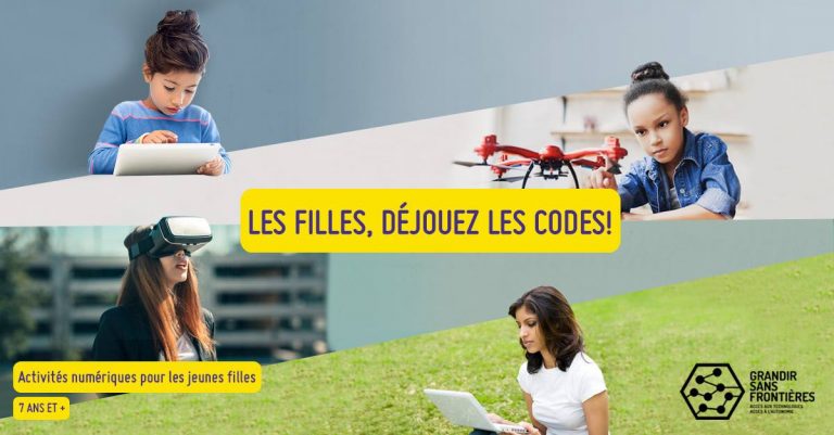 Grandir sans Frontières (GSF) est un organisme de bienfaisance qui existe depuis 2003 et qui a pour but d’améliorer l’accès aux technologies pour tous. Pour ce faire, il fait la promotion de l’éducation numérique auprès des jeunes afin de les outiller dans un monde dominé par le numérique. GSF fait aussi partie du Mouvement montréalais Les Filles & le code. Par celui-ci, il renforce sa volonté d’œuvrer pour l’insertion des jeunes filles dans le monde des technos.