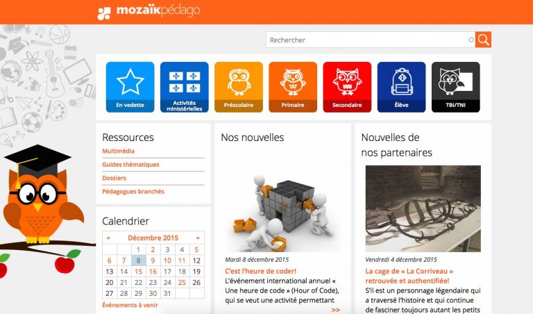 En marge à gauche sur la page d’accueil, on peut accéder aux guides thématiques, grands dossiers et à la précieuse banque de ressources multimédia, entre autres. Le calendrier, bien en vue, permet de connaitre les événements à venir, notamment pour soutenir le développement professionnel des enseignants en ce qui a trait au numérique. Enfin, il ne faut surtout pas oublier de s’abonner à l’infolettre pour ne rien manquer des nouveautés.