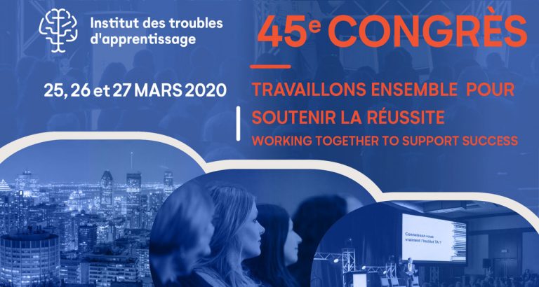 L’Institut des troubles d’apprentissage vous invite à son 45e congrès international annuel, qui aura lieu à l’hôtel Westin de Montréal du mercredi 25 au vendredi 27 mars 2020.