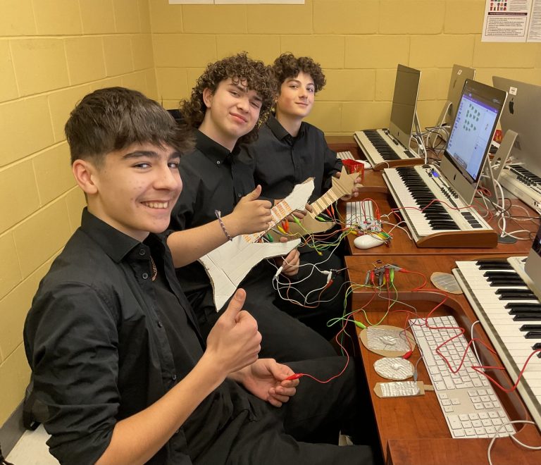 Leslie Surprenant, enseignante en Musique-études, utilise le microcontrôleur Makey Makey et le logiciel Scratch pour permettre à ses élèves de fabriquer leurs propres instruments de musique et de composer des pièces uniques. Nous l’avons rencontrée pour en discuter avec elle.