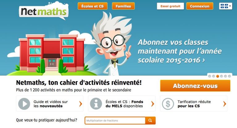 MONTRÉAL, QUÉBEC–(Marketwired – 7 juin 2016) – Le studio Scolab est heureux d’annoncer que Netmath, la plateforme numérique spécialisée dans l’apprentissage des mathématiques la plus utilisée au Québec et en Ontario francophones, marque un nouveau tournant dans son évolution.