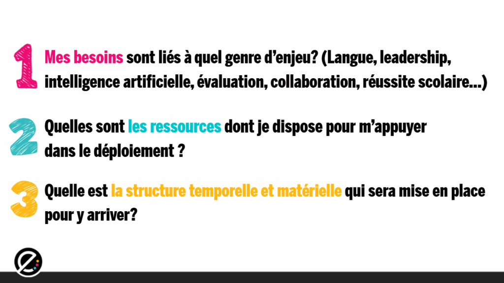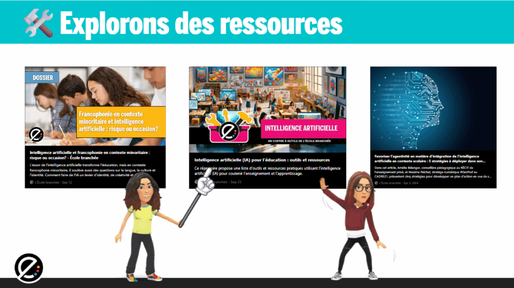Cette expérience illustre ce qui peut être accompli grâce à une collaboration étroite entre l’École branchée et les différents milieux scolaires. En écoutant activement les besoins du terrain, notre équipe propose des ressources ciblées pour avoir un impact significatif sur les pratiques enseignantes.Le parcours présenté est maintenant disponible en Forfait ADN (Action Déploiement Numérique) pour les regroupements d’écoles souhaitant renforcer leurs compétences sur l’usage pédagogique de l’IA. L’intelligence artificielle représente un levier important pour améliorer les pratiques pédagogiques et gagner en efficacité. Contactez-nous sans hésiter!
