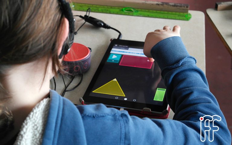Le travail en collectif est l’autre élément essentiel du concept « fonofone ». Contrairement à d’autres applications utilisées à l’école, axées davantage sur le travail individuel, fonofone vise à sortir le jeune de sa « bulle » technologique en l’amenant à partager ses découvertes avec les autres : fonofone, outil de création et d’exploration des sons, transforme également la tablette en un instrument de musique de chambre prenant son sens et son intérêt à travers la collaboration de tout le groupe. On développe ensemble un projet de création, on l’interprète, puis c’est le retour critique. On parcourt ainsi les trois niveaux de compétence décrits par le programme du Ministère : Créer – interpréter – apprécier.