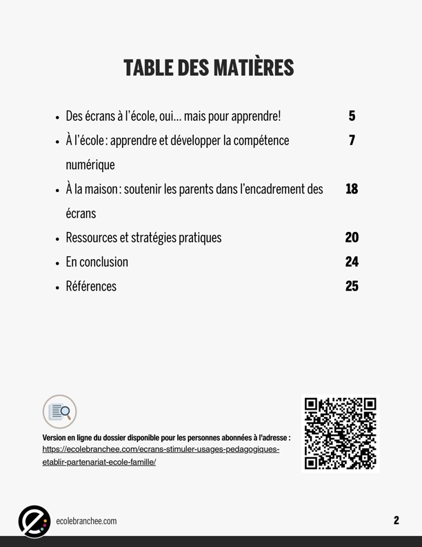 Les écrans sont omniprésents dans la vie des jeunes comme des adultes. Entre préoccupations liées à la santé, directives d’interdiction et nécessité de préparer les élèves au monde numérique, les écoles – et les familles – sont confrontées à un défi de taille : trouver l’équilibre. Ce dossier propose des repères scientifiques, des recommandations et des pistes concrètes pour faire du numérique un levier pédagogique et éducatif, en misant sur la cohérence école-famille et sur le développement de la compétence numérique.