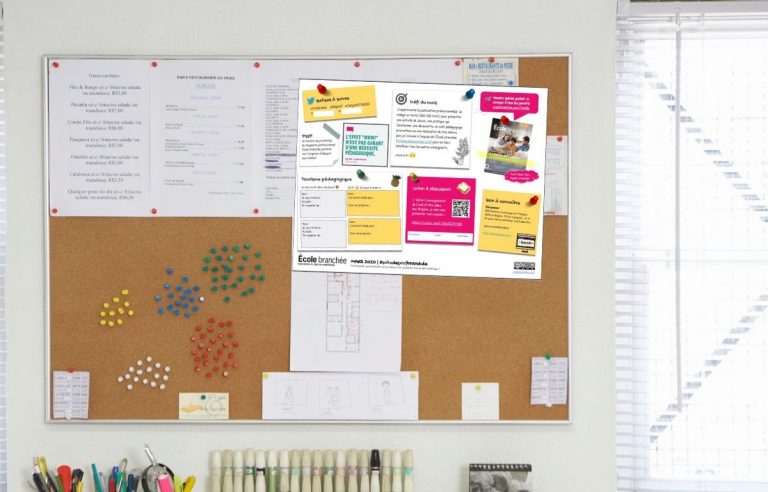 Je vous propose donc la toute première affiche #Salledeprofbranchée! Elle propose un défi professionnel, une pensée inspirante, des ressources utiles à découvrir, un modèle tout simple pour instaurer la charte de l’ananas dans votre école, des balises à suivre sur Twitter, et plus!