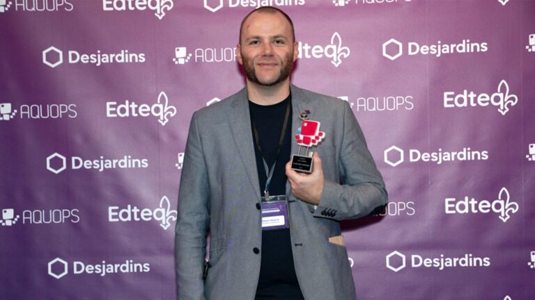 Sébastien Bergeron se démarque par son approche proactive et sa présence constante auprès du personnel enseignant et des élèves de son centre de services scolaire. Il croit fermement en l’intégration du numérique pédagogique et prend les devants afin d’offrir une panoplie d’opportunités de développement de la compétence numérique pour tous.