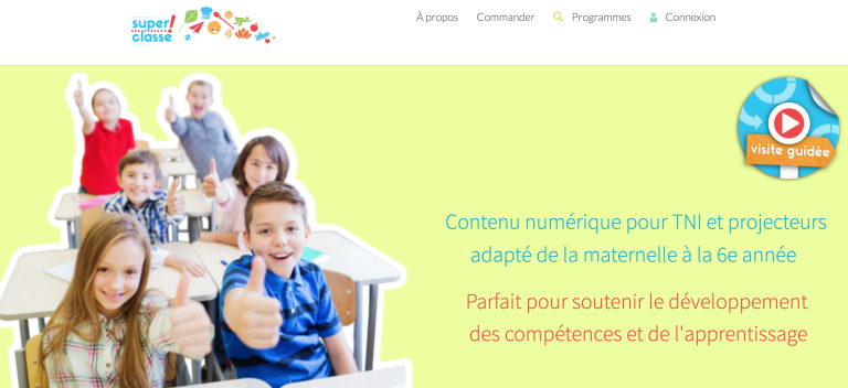 La plateforme Super classe s’adresse aux écoles de la maternelle à la 6e année, aux garderies et services de garde de tout le territoire canadien. Elle offre des outils sous forme de contenu numérique qui visent principalement à soutenir les enseignants et éducateurs dans leur mission vers l’épanouissement et la réussite scolaire de leurs élèves.