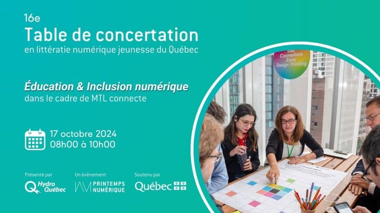 Communiqué — La Table de concertation en littératie numérique jeunesse du Québec sera présente à MTL connecte : la Semaine du numérique à Montréal, le 17 octobre 2024. Les membres prendront part à un parcours d’activités de réflexion et d’idéation sur la thématique « Éducation & Inclusion numérique » qui souligne l’importance de l’accès équitable à la technologie et à l’éducation numérique. Le thème principal, MÉTAMORPHOSE, explorera comment les avancées technologiques et les collaborations innovantes peuvent transformer notre monde et influencer l’avenir du numérique.