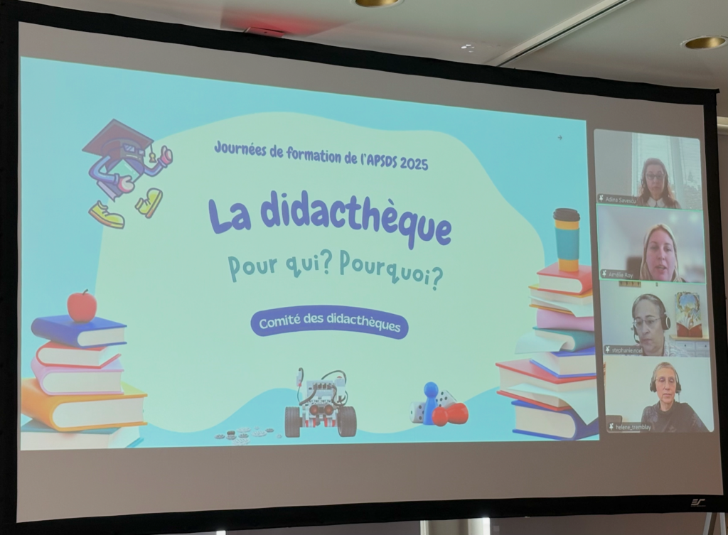 Des bibliothécaires des Centres de services scolaires des Bois-Francs, de la Capitale, Marie-Victorin, des Chic-Chocs et de Laval ont présenté le fonctionnement de leur didacthèque respective.